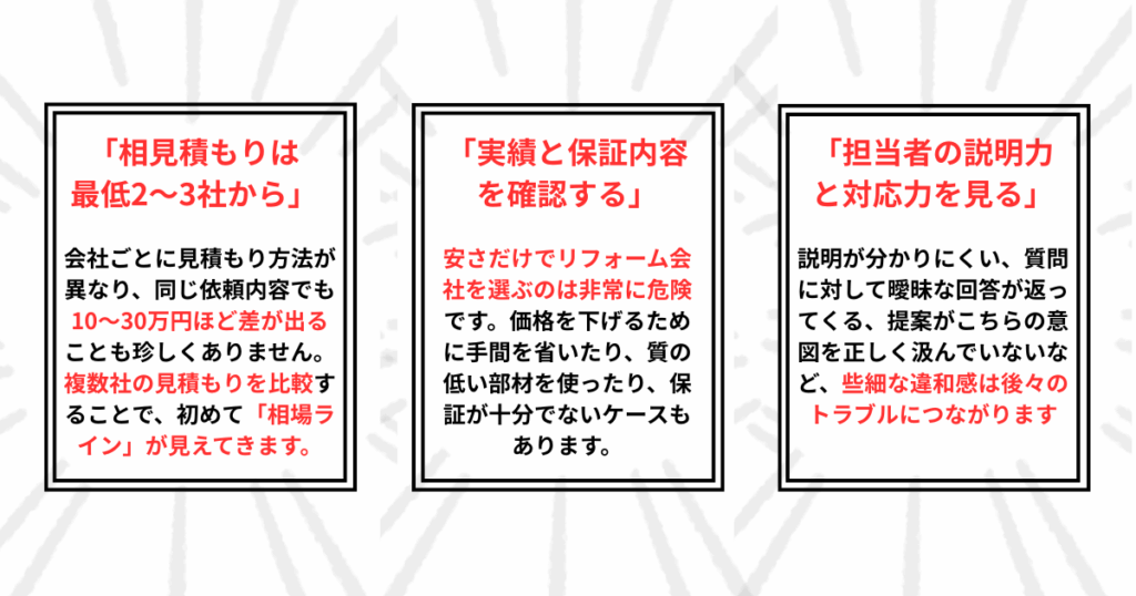 リフォームで抑えるポイントは分かったけど実際にやるとなると