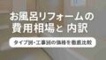 | 在来浴室→ユニット化 | 100〜180万円 | 5〜10日 | 防水更新・断熱改修を同時にしやすい |