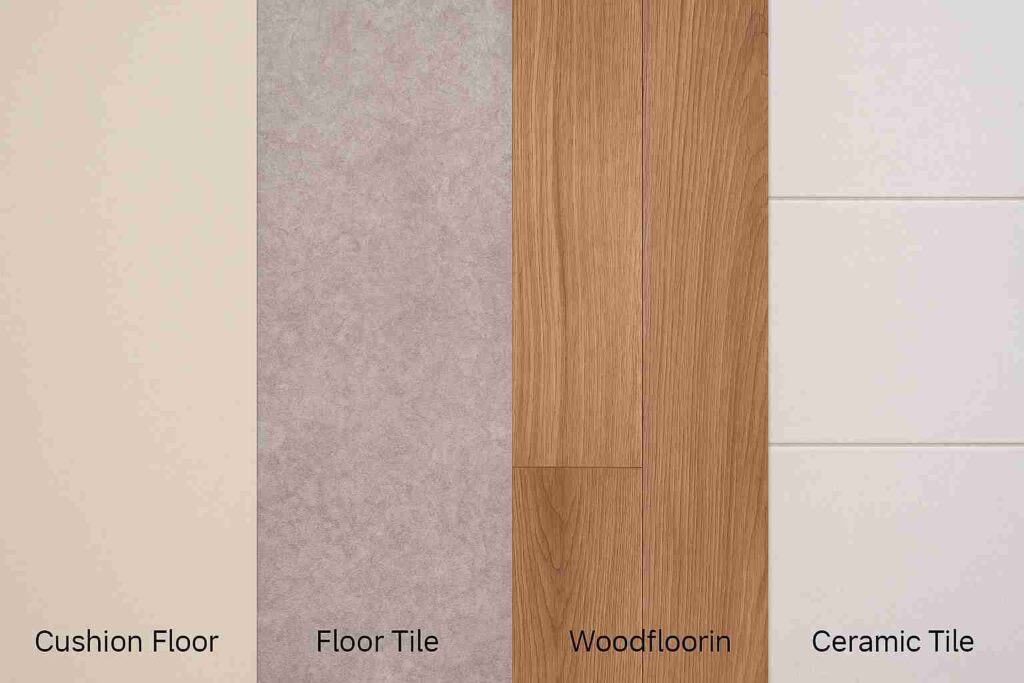 クッションフロアやタイルなど「水に強い素材」を選びましょう。 - 便器との相性を確認する
