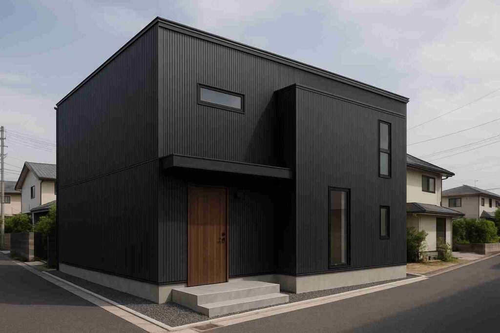 周囲がベージュやグレーの家が多いエリアで、一棟だけ真っ黒や原色だと浮いて見えます。