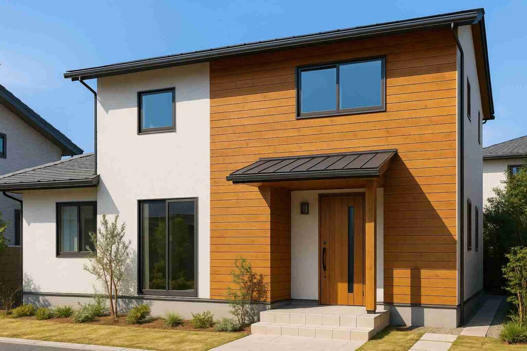 ツートン外壁は、上下または縦割りで2色を組み合わせるデザインです。