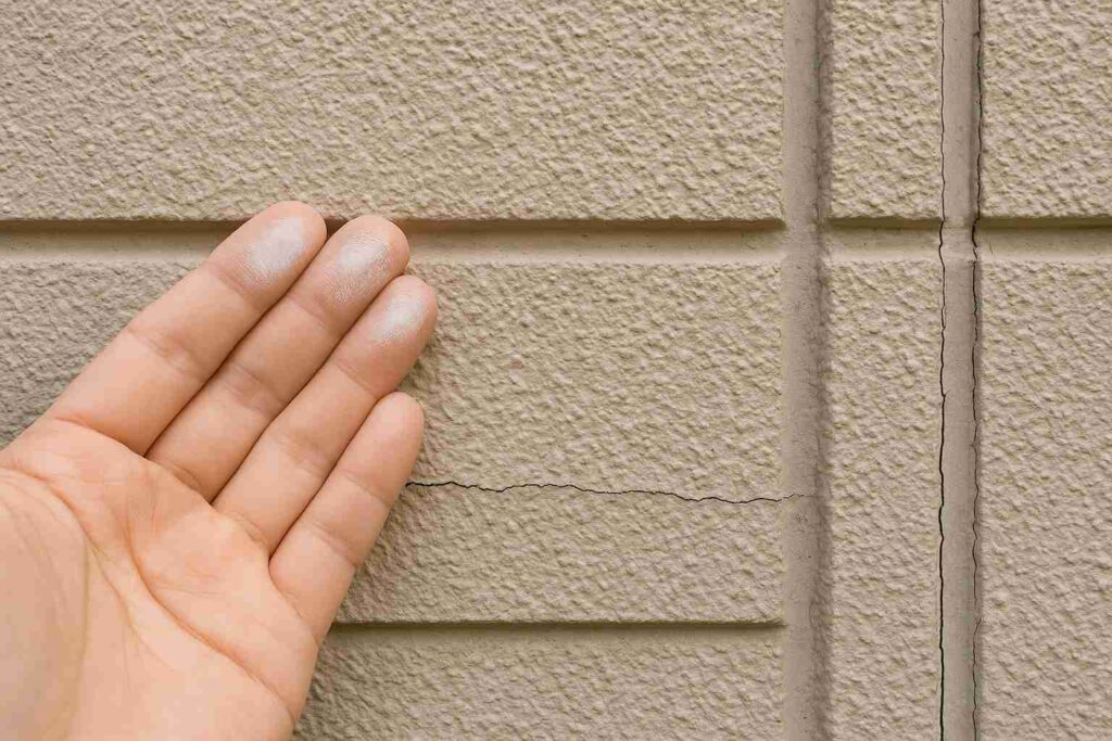 下地処理が甘いと密着力が低下し、8〜10年で剥がれ始めます。 - コーキング(シーリング)の割れ