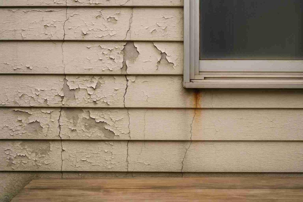 「安い塗料でいいや」と選んだ結果、数年で色あせ・チョーキング(粉吹き)現象が発生。