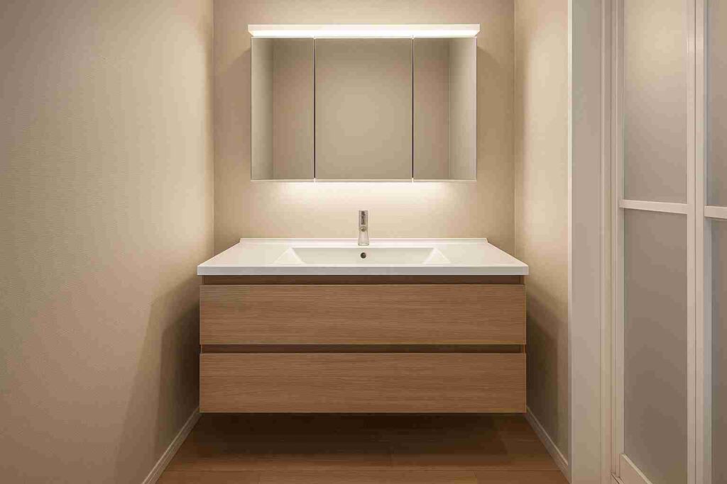 空間を縦に広く見せる効果があり、洗面台周りをすっきりと見せます。