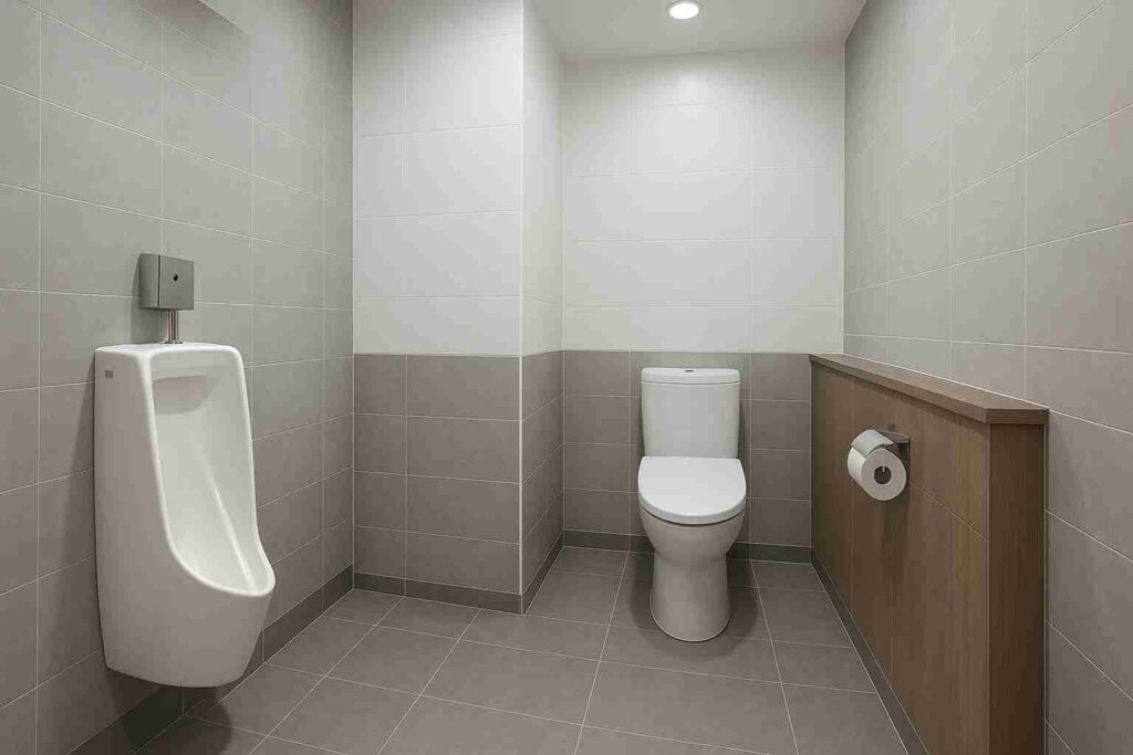 男性用トイレは、使う人の姿勢・動線・掃除のしやすさなど、女性用トイレとは少し違った工夫が必要です。