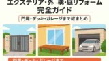 → 門扉・デッキ・外構など外まわりのリフォーム連携は「エクステリア総合ガイド」記事で紹介しています。